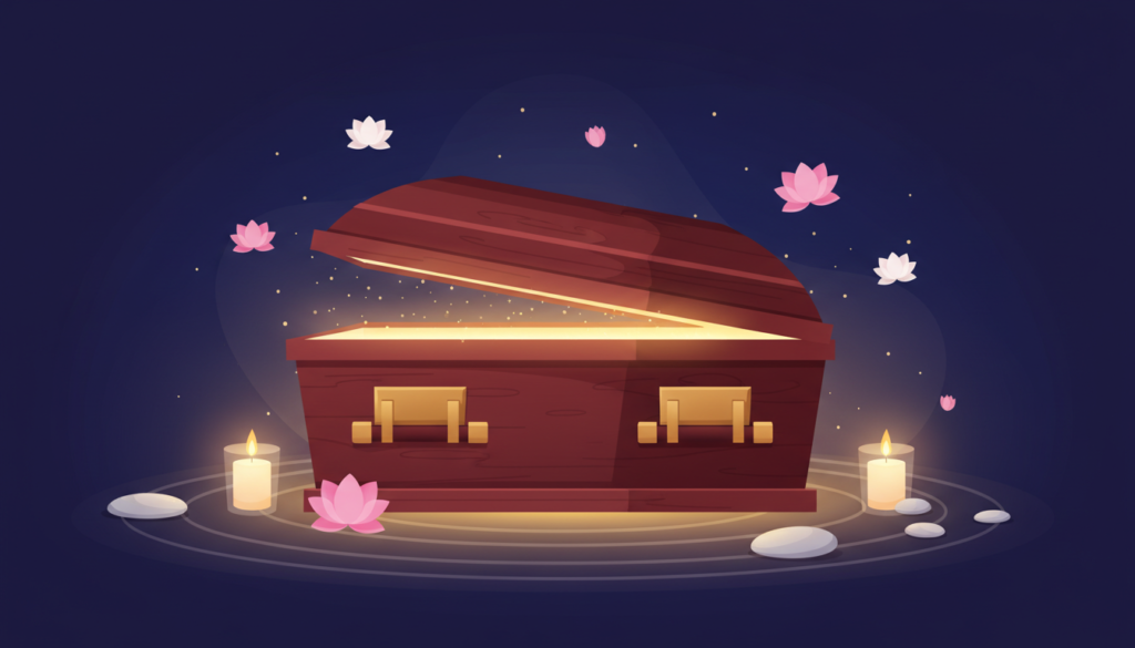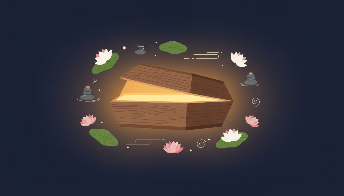 棺おけ瞑想とは、本物の棺おけの中に横たわり、瞑想を行う体験です。「不謹慎では?」と感じる方もいるかもしれません。でも実は、死を意識することで生をより深く感じるという発想は、古来から世界中の文化や哲学に根付いています。